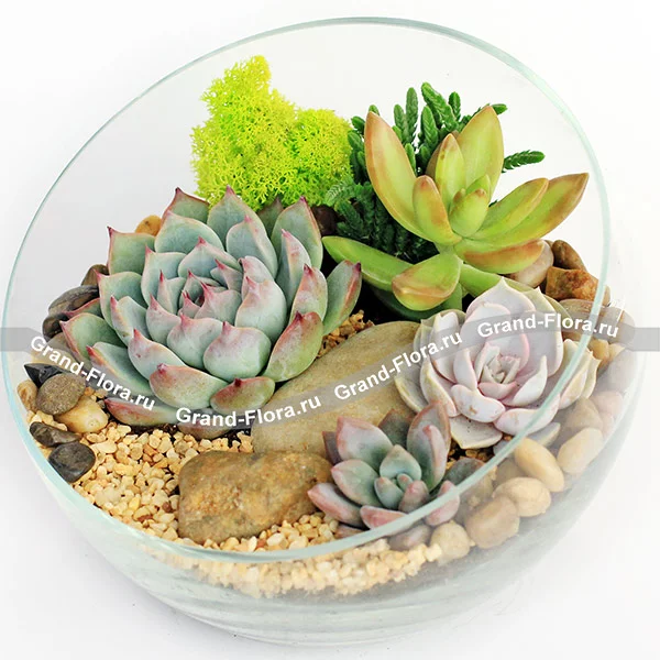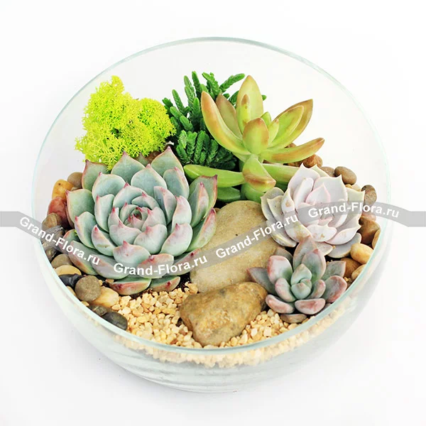 Стандартный: флорариум, эхеверия, молодило, седум.
